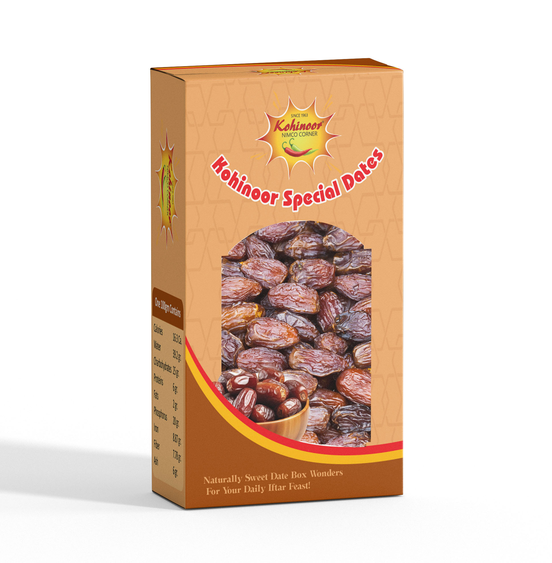 Indulge in nature’s sweetness with our carefully selected, premium-quality dates. Each bite is soft, rich, and naturally nourishing, perfect for snacking, gifting, or adding a healthy touch to your daily routine. Packed fresh in a 500 gm box, these dates from Kohinoor Nimco bring you the perfect blend of taste and tradition.